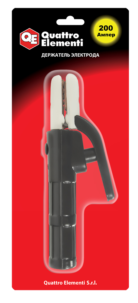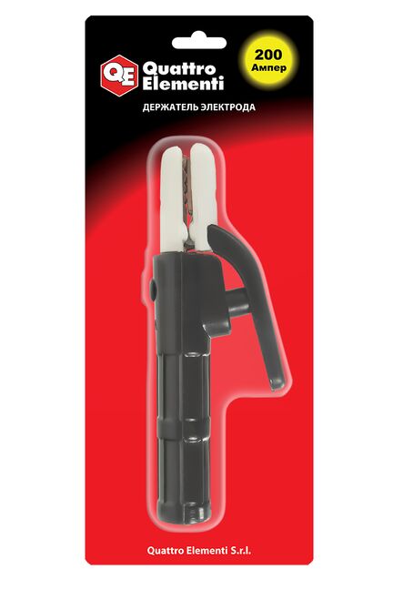 Держатель электрода QUATTRO ELEMENTI предназначен для надежной фиксации электрода и подвода к нему тока во время сварочных работ методом MMA. Электропроводящие части надежно изолированы от случайного прикосновения. Надёжный электрододержатель 200 А с термостойким корпусом, удобной рукояткой и быстрозажимным механизмом для эффективной и безопасной сварки.