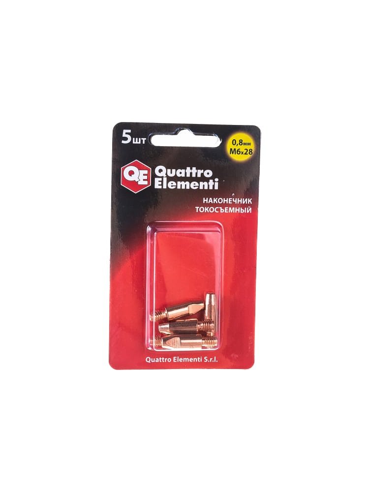Высокопрочные наконечники токосъемные QUATTRO ELEMENTI M6x28, 0,8 мм обеспечивают надежную и стабильную подачу тока при сварочных работах. Подходят для полуавтоматических сварочных аппаратов и используются с проволокой диаметром 0,8 мм, идеально подходят для профессиональных и полупрофессиональных работ по металлу.