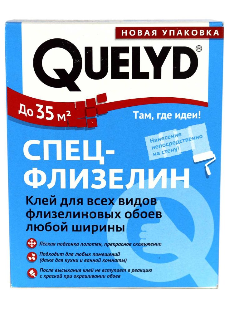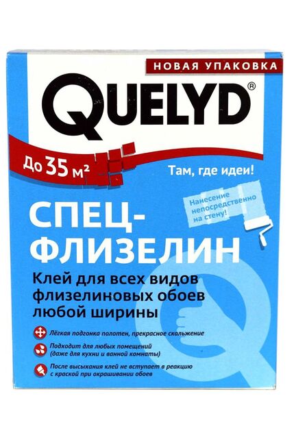 Клей для флизелиновых обоев Quelyd 300 грамм предназначен для материала, в основе которого лежит прессованная целлюлоза. Это могут быть и тяжелые виниловые, и нетканные флизелиновые, но только не бумажные обои, поскольку они гораздо тоньше и деликатнее по своей структуре. Лёгкое нанесение, быстро размешивается, экономный расход, не оставляет следов, подходит для всех флизелиновых обоев.