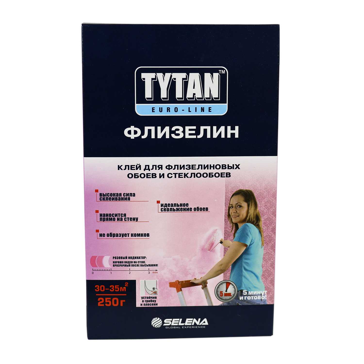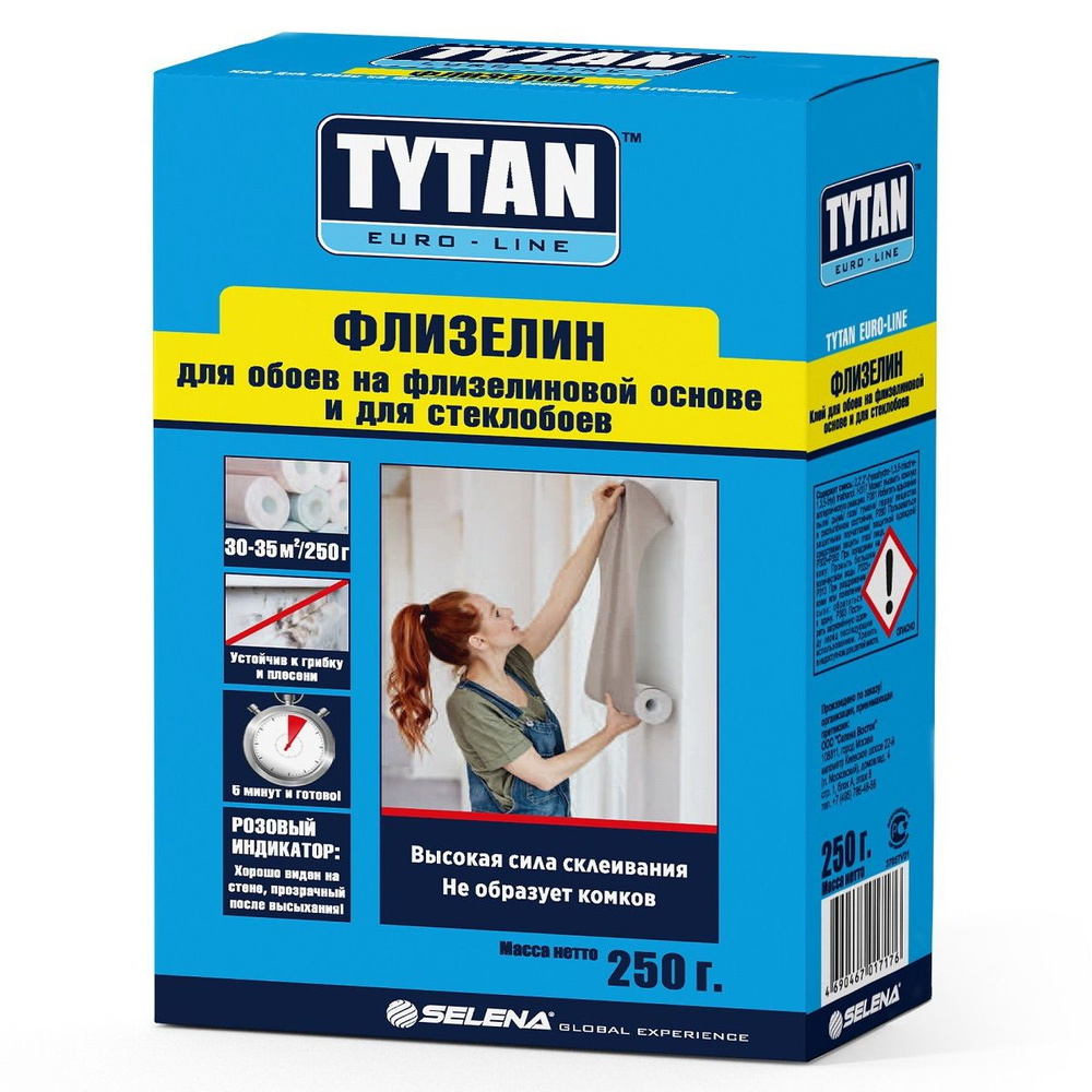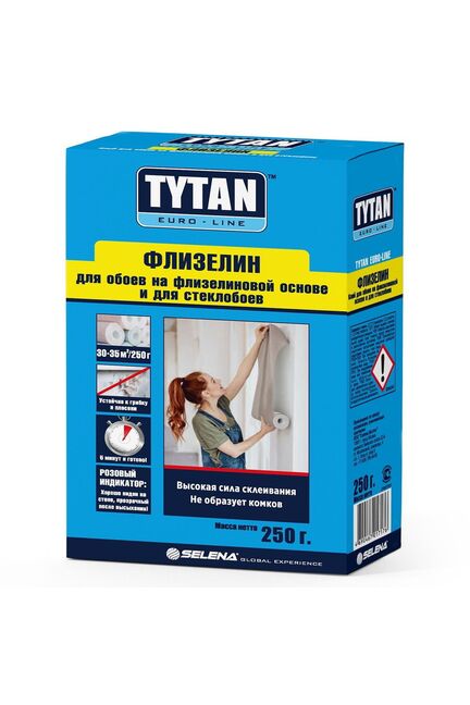 Tytan Euro-Line Флизелин - рекомендуется для всех видов флизелиновых и стеклообоев любой ширины, стандартных и под покраску. Подходит для всех типов виниловых и бумажных обоев. Изготовлен на основе модифицированных крахмалов немецкого производства концерна Emsland-Starke GMBH, антисептических и противогрибковых добавок и розового цветоиндикатора. РАЗВЕДЕННЫЙ КЛЕЙ – НЕЖНО-РОЗОВЫЙ, ПОСЛЕ ВЫСЫХАНИЯ – ПРОЗРАЧНЫЙ! Для флизелиновых обоев, раствор за 3 минуты, выдерживает до 30 м², легко наносится, без комков, устойчив к влаге и плесени.