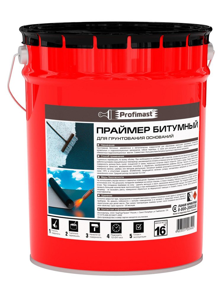 Праймер битумный PROFIMAST — профессиональное средство для быстрой и эффективной подготовки поверхностей перед нанесением гидро- и пароизоляции. Идеален для обработки бетона, цементных стяжек, кирпича, металла и дерева при монтаже рулонных и наплавляемых кровельных, гидроизоляционных материалов, а также для антикоррозийной защиты конструкций.