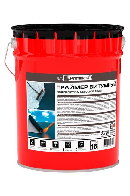 Праймер битумный PROFIMAST — профессиональное средство для быстрой и эффективной подготовки поверхностей перед нанесением гидро- и пароизоляции. Идеален для обработки бетона, цементных стяжек, кирпича, металла и дерева при монтаже рулонных и наплавляемых кровельных, гидроизоляционных материалов, а также для антикоррозийной защиты конструкций.