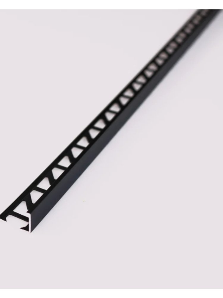 Для керамической плитки толщиной до 9мм. Проофиль с перфорацией "окно", с просечкой для гибки. Чёрный прочный профиль 2,7 м для аккуратной отделки краёв плитки и панелей, влагостойкий, прост в монтаже и устойчив к повреждениям.