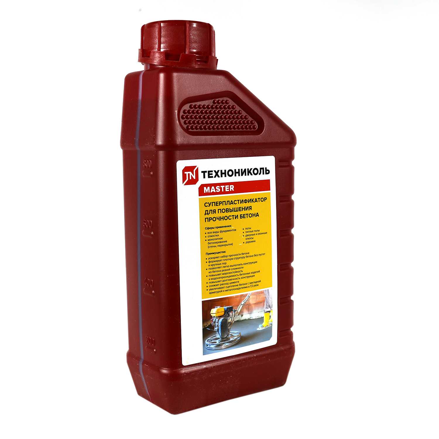 Пластифицирующая добавка ТЕХНОНИКОЛЬ для бетонов и строительных растворов, повышающая долговечность конструкции, ускоряющая набор прочности бетона, повышающая морозостойкость и водонепроницаемость бетонных изделий, состоящая из водного раствора высокоэффективных комплексных суперпластификаторов и неионогенных поверхностноактивных веществ.
