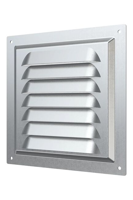 Оцинкованная стальная решетка 150×150 мм с защитной сеткой для надежной вентиляции и защиты от мусора. Для влажных и сухих помещений.