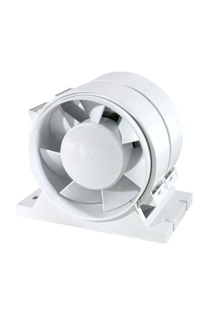 Компактный канальный вентилятор d100 мм для вытяжки и притока, производительность 185 м³/ч, низкий уровень шума, лёгкая установка в вентиляционные системы.