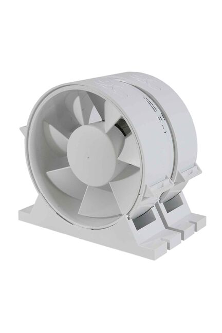 Вентилятор канальный осевой приточно-вытяжной: возможность сопряжения с фланцевыми воздухораспределителями; в зависимости от положения вентилятора в системе возможность приточной или вытяжной вентиляции; внешн.Φ128мм, внутр.Φ125мм, длина 82мм, длина внешн части 30мм; производительность 180мᵌ/час; максимальное давление 56Па/час; напряжение питания 230В; потребляемая мощность 20Вт; уровень шума 36дБ; макс.t работы 40̊C; масса 0,45кг