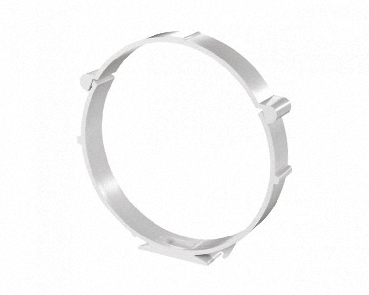 Держатель круглых каналов: применяется для монтажа круглых каналов, Материал: ABS-пластик; Цвет: белый, высота 117,5мм, ширина 109,4мм, толщина 20мм, внутр.Φ 103,4мм Прочный держатель для труб 100 мм легко и надежно фиксирует воздуховоды и коммуникации, подходит для монтажа в системах вентиляции и кондиционирования.