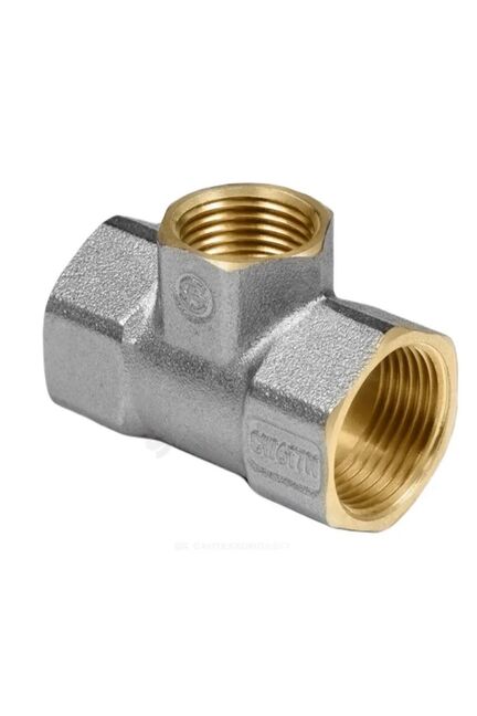 Надежный тройник из никелированной латуни с ВР 25x15x25 мм для водоснабжения и отопления, подходит для любых труб, прост в установке и долговечен.
