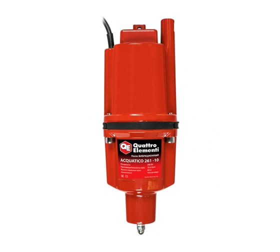 Вибрационный насос QUATTRO ELEMENTI предназначен для организации систем водоснабжения и полива. Вибрационный насос с нижним забором воды, кабель 10 м, для чистой и слегка мутной воды, идеален для колодцев и скважин на даче или стройке.