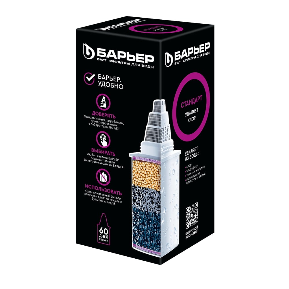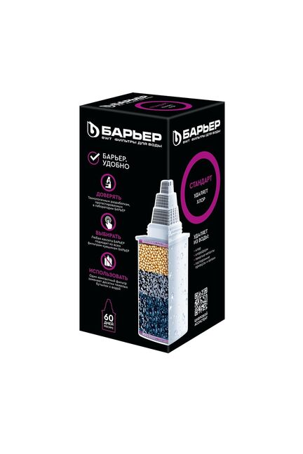 ысококачественная доочистка водопроводной воды от хлора, хлорорганики, тяжелых металлов, пестицидов, ПАВ и нефтепродуктов. Подходит для всех фильтров кувшинов БАРЬЕР. Универсальный картридж очищает до 350 л воды, устраняет хлор и тяжелые металлы, подходит для большинства фильтр-кувшинов, легкая замена.