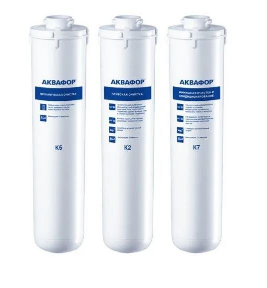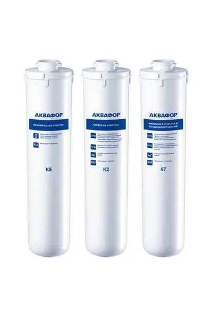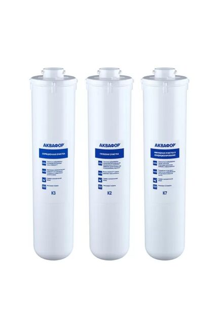 Комплект сменных модулей К3-К2-К7 предназначен для систем очистки воды Аквафор серии Кристалл. Пластиковая кассета обеспечивает глубокую очистку проточной воды из крана от хлора, тяжелых металлов, железа и других примесей, содержащихся в воде. Универсальный водяной хозяйственный модуль К3 создан для предварительной механической фильтрации воды. Он защищает от попадания крупных примесей и растворенных частиц ржавчины и железа. К2 - очищающая кассета с внутренней угольной мембраной для глубокой чистки. Удаляет хлор, органические примеси, тяжелые металлы, делая воду чистой. Модуль К7 - финишная очистка воды и ее кондиционирование. Содержит серебро в активной ионной форме. Фильтрация до 0.8 микрон. Ресурс 8000 литров, но не более 1.5 лет. Сменный комплект для глубокой очистки воды, устраняет хлор, запахи и примеси, ресурс до 8000 л, легко устанавливается, подходит для систем «Кристалл М».